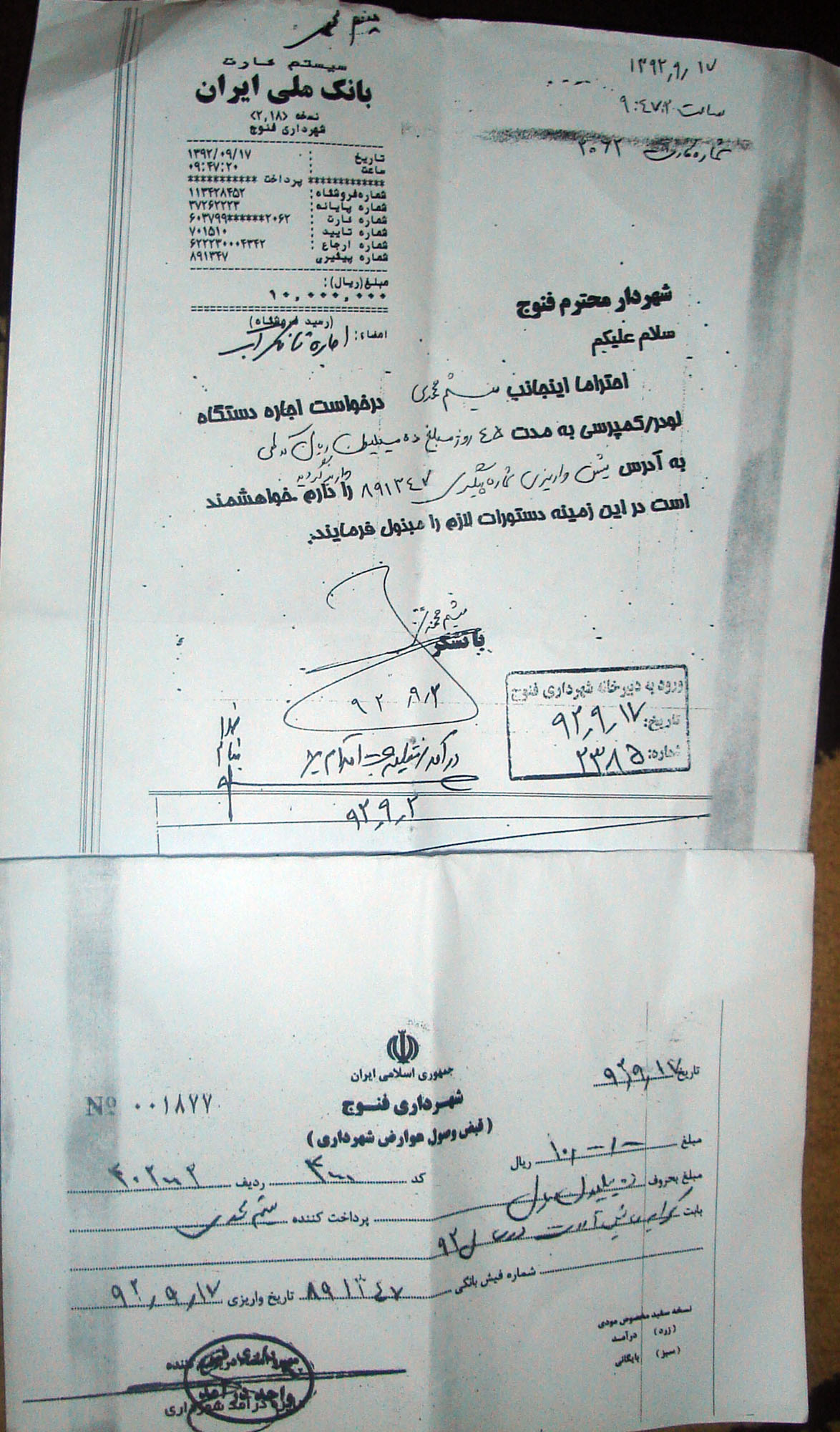 دوستان تانکر همونی هستش که پشت تراکتور بود که قبلا آب به فضای سبز میدادن ومعمولا در عروسیا هم میدیدیمش تانکر 3ماه بود که آقای بهادرزهی پیمانکار شهرداری در اختیارش بوده وتوش قیر بوده برای استفاده در تاریخ9/2میثم محمدی میاد برای مدت 5روز 250تومن میده میبره اجاره بعد از مدتی دوباره اعلام میکنه من این تانکر رو مجدد میخوام در تاریخ نامه بالا با مبلغش میبره اجاره از اونجایی که باز من همه نظرات شما رو به سرپرست وشورا منتقل کردم گفتن مبلغ ذکر کاملا مناسبه تانکری که کل قیمتش 4ملییون هستش چقد باید بده برا 45روز اونم تانکری که 3ماه بدون حساب تحویل بهادرزهی بوده در ادامه تصریح کردن که میثم محمدی کمکهای زیادی بما کرده از جمله خرید پرینتر برای دفتر شورا500هزار وخرید مبل